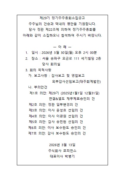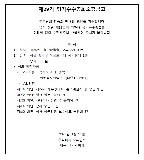 제 29회 정기주주총회소집공고