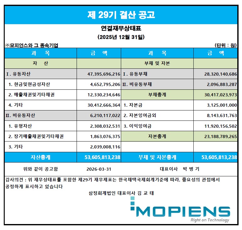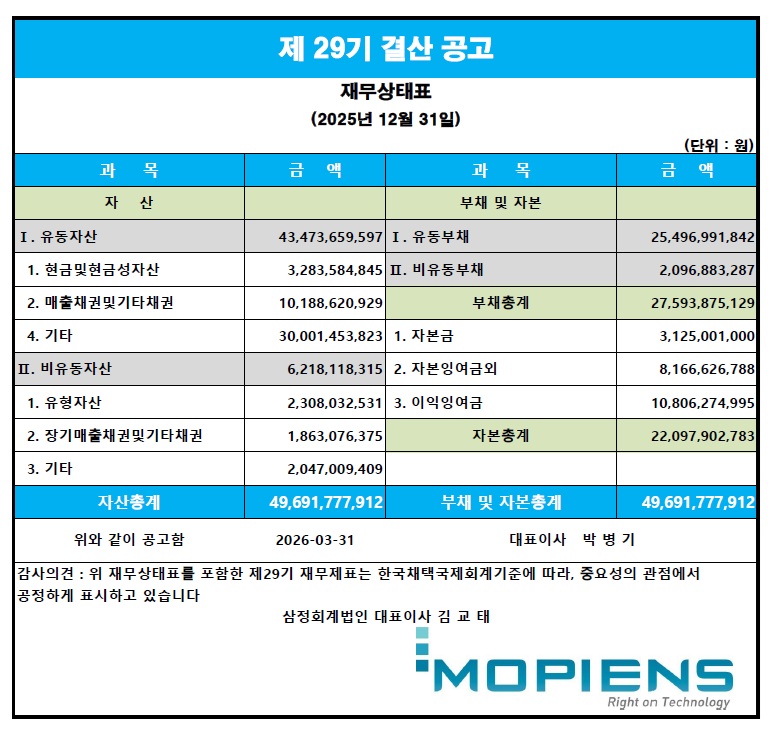 제 29기 결산공고